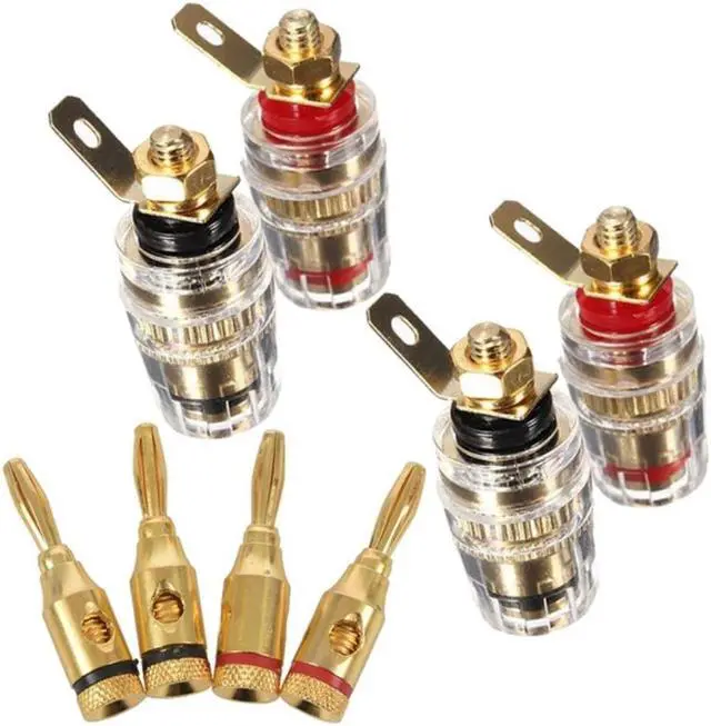 8Pcs 4Mm Banana Plug Speaker Accessories:: 4Pcs Banana Plugs For Speaker Cable Connections / Gold Plated & 4Pcs Amplifier Speake