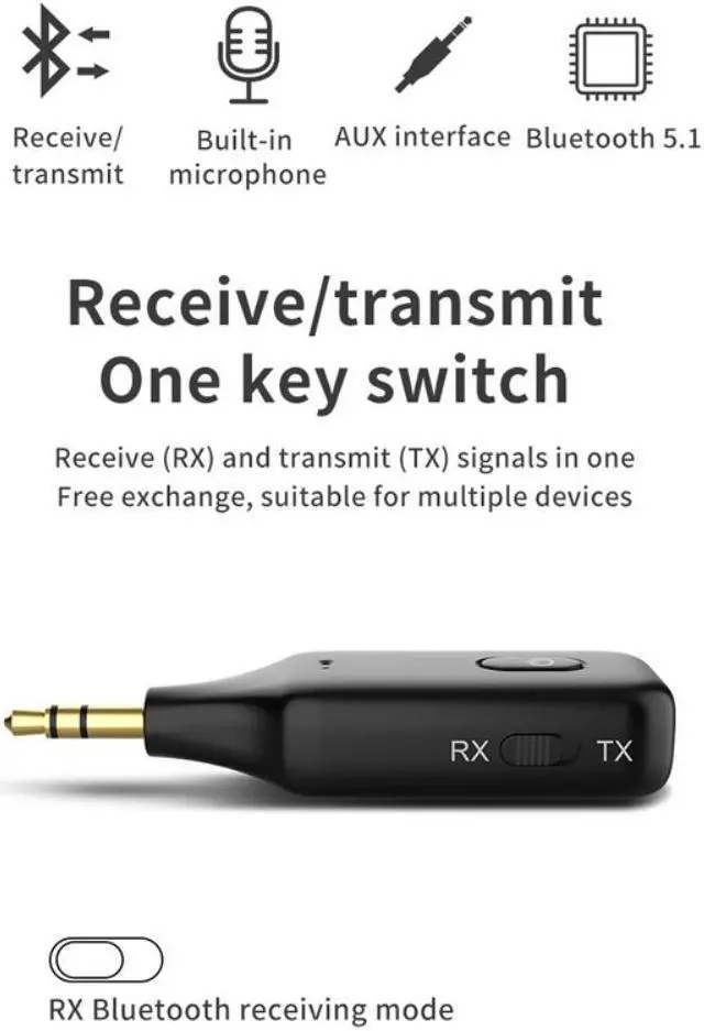 Built-in 150mAh rechargeable , long life. Support the TV launch mode, solve the problem that the TV cannot connect to the Bluetooth headset. Support 10-15 meters long-distance transmission, independent antenna, enhance Bluetooth signal.