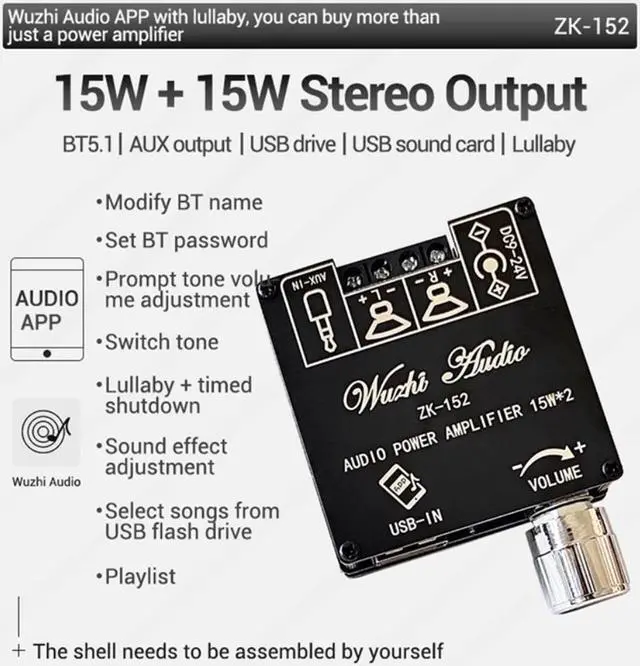 ZK-152 Bluetooth Audio Digital Power Amplifier Board Module 2.0 Stereo Dual Channel 15W+15W Support APP Connection