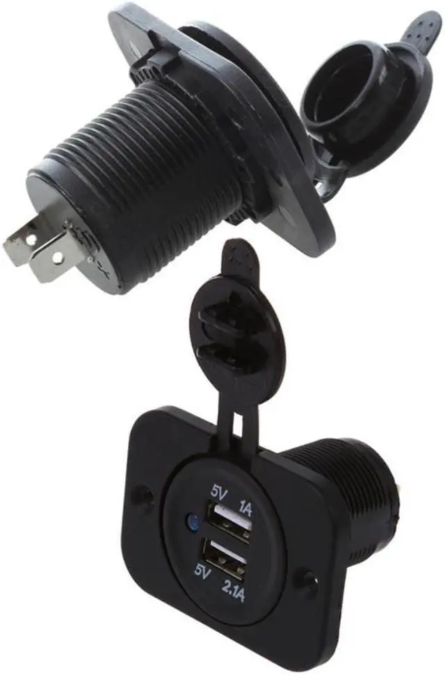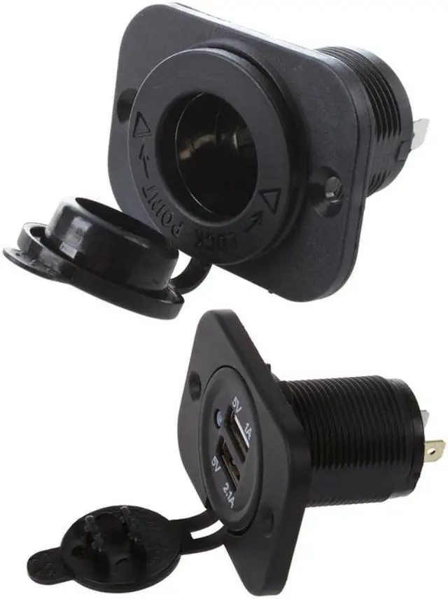 2 X Power Outlet 12V Cigarette Lighter Plug Recessed For Car Moto Boat & Adapter Socket 2 USB Ports Car Charger For 12V Car Auto