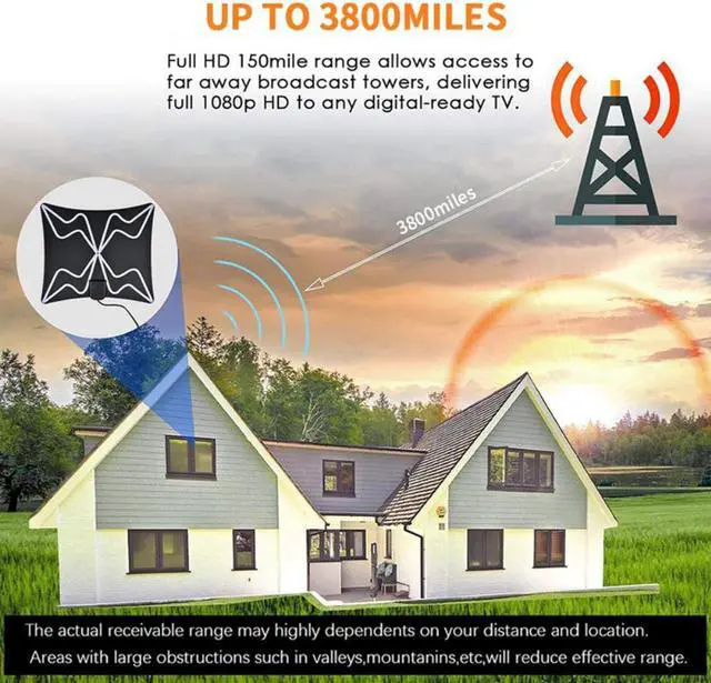 2. Moon Image & Sound Quality: Smart TV digital antenna adopts signal amplification and enhancement technology, which can pick up signals up to 3800 miles or more, filter out cellular signals, so as to obtain clearer images, high sound quality, low noise and more. The signal is a broadcast TV signal with enhanced gain, range and frequency performance.