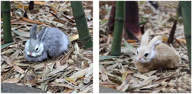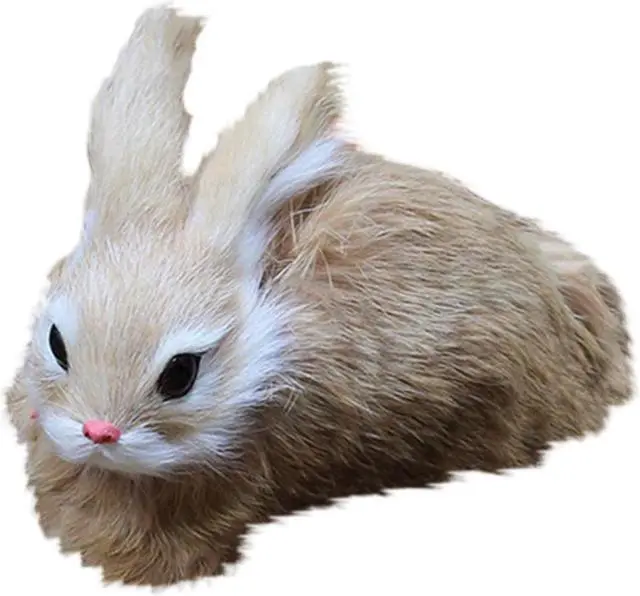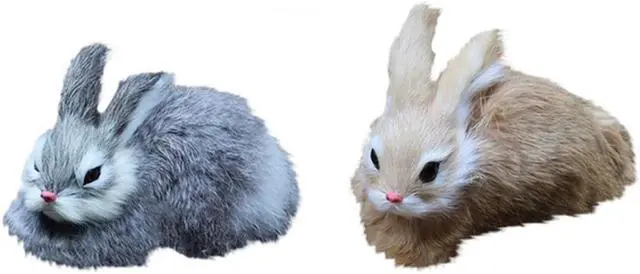 2X 15Cm Mini Realistic Cute Plush Rabbits Fur Lifelike Animal Easter Bunny Simulation Rabbit Toy Model Birthday Gift(Khaki&Gray)