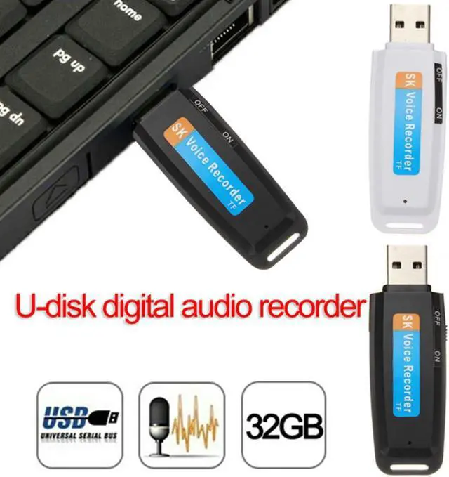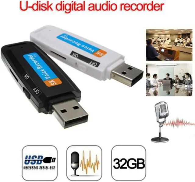 2X Mini U-Disk Digital Audio Recorder USB 3.0 Flash Drives Maximum Support 32GB Memory Card Black