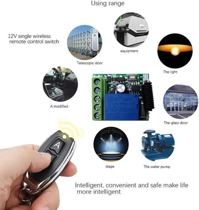 4.It supports remotely and wirelessly control your Garage Door, Electronic Gates, Electrical Appliances and other telecommand equipments ,Electrical Appliances, Motorcycle Alarm, Car Sunroofs, Heating Systems, etc. Bringing you experience of remote control, Please don't miss it.