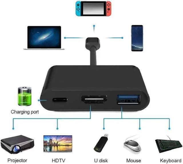 Hub with USB PD function: 1xUSB 3.1 + 1xHDMI-Compatible + 1xUSB Type-C charging port, Perfect support for Nintendo Switch, Samsung S8/S8+, / Pro, USB flash disk, camera, removable hard drive, mouse, keyboard or other USB A 2.0/USB A 3.0 devices