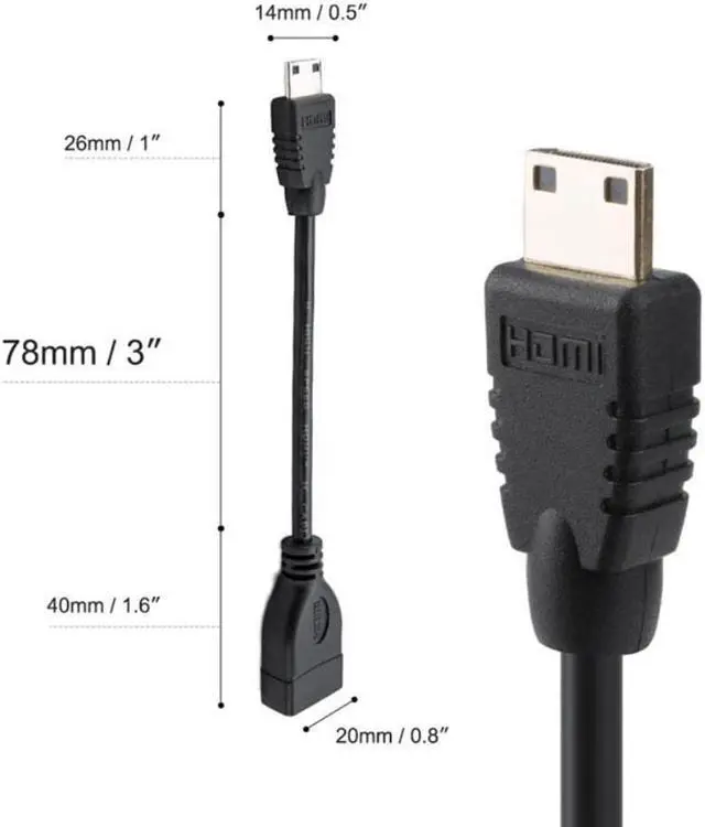 • Mini HDMI To HDMI Cable, Cable Creation 0.5Ft Mini-HDMI Male To HDMI Female Adapter, Support 1080P Full HD, 3D, 0.15M, Black & 4