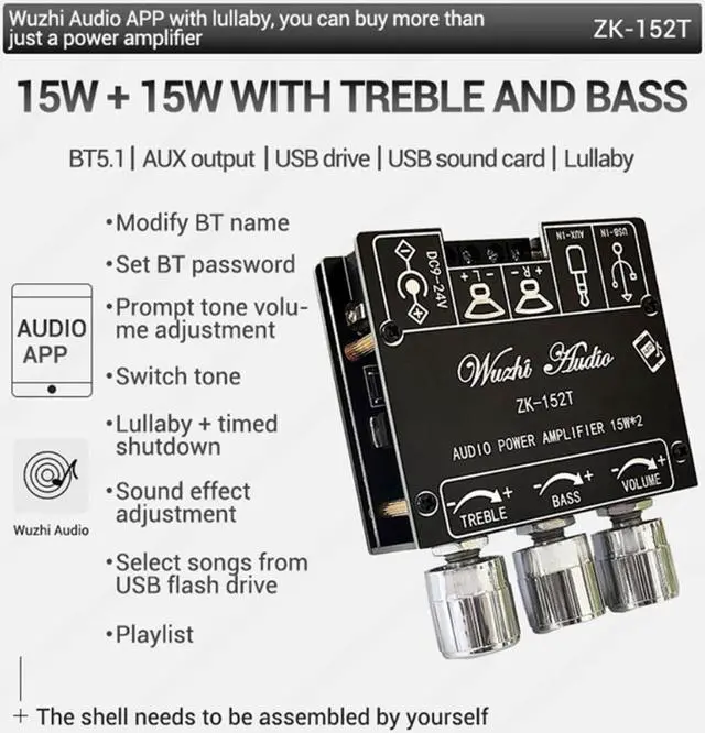 ZK-152T Bluetooth Digital Amplifier Board Module 2.0 Stereo Dual Channel 15W+15W With High And Low Tone Support APP