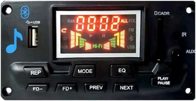 3. Support function switching hotkey (one button in Card, u disk, AUXIN, FM, Bluetooth playback) (MODE button on the remote control is the function switch button). Support firmware encryption. Support USB/SD upgrade. FAT16, FAT32, ExFAT/Fat64 file system support. Support directory level: 8 level subdirectories