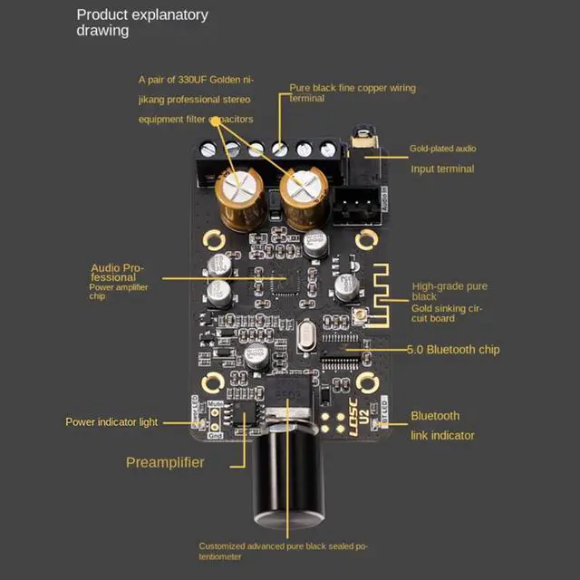 Input mode: 5.0 Bluetooth audio, 3.5mm audio input, 3P-2.54mm terminal audio input
