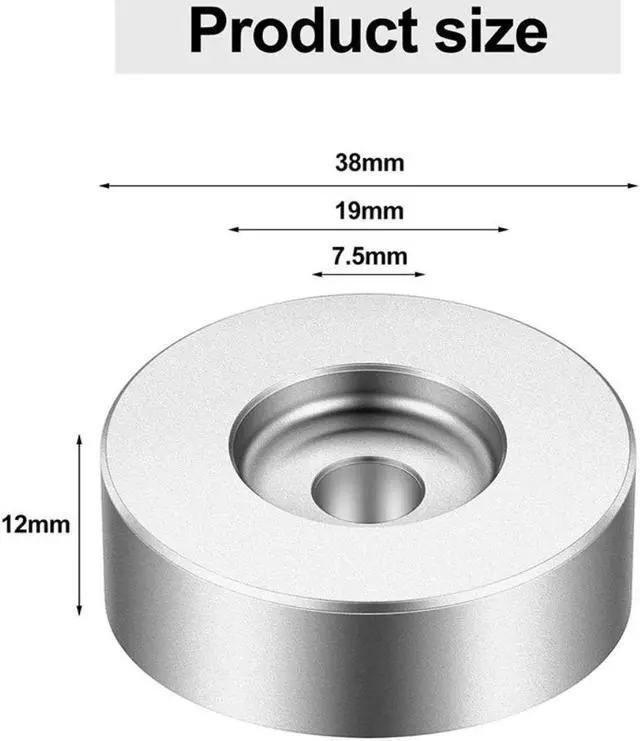 Size information: the size of aluminum vinyl record adapter is approx. 38 mm/ 1.52 inches, the diameter of the inner hole is 8 mm/ 0.32 inches, and the external height is approx. 12 mm/ 0.48 inches, which is nice to replace your worn phonograph adapter