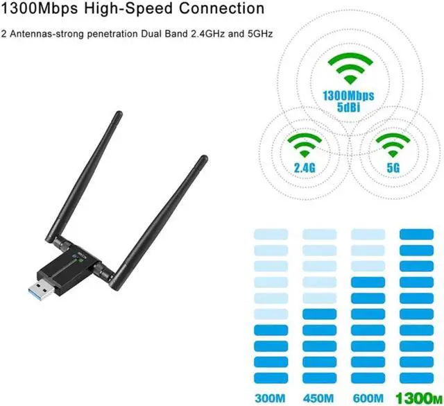1300Mbps USB3.0 Interface 802.11AC WiFi Adapter, Suitable for WIN7 8 10 XP Vista MAC Linux, USB Computer Network Adapter
