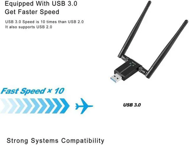 Super USB 3.0-WiFi adapter for PC, using the USB 3.0 interface.Works more stable and 10 times faster than USB 2.0, Wireless usb adapter brings 10 times faster and more solid wireless network connection.