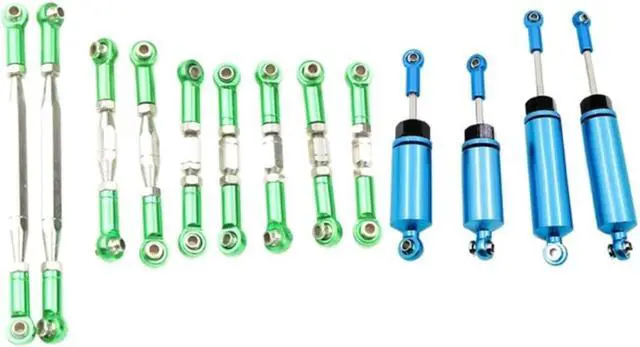 1 set Rc Parts Metal Shock Absorber with swing arm pull rod ,steering gear pull rod , rear bridge pull rod, steering pull rod & 1 set Metal Drive Shaft Universal Transmission Parts with, front shock absorber and rear shock absorber, Color:Green & blue
