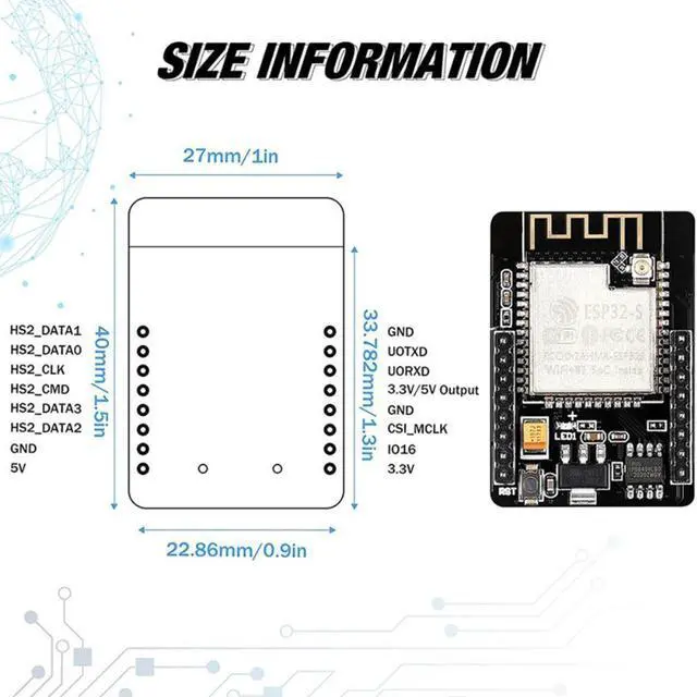 Small-size: the ESP32-CAM has a competitive small-size camera module that can operate independently as a mini system, measuring only 27 x 40.5 x 4.5mm, with deep sleep current and as low as 6mA