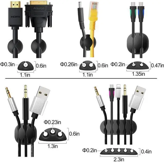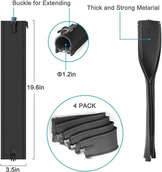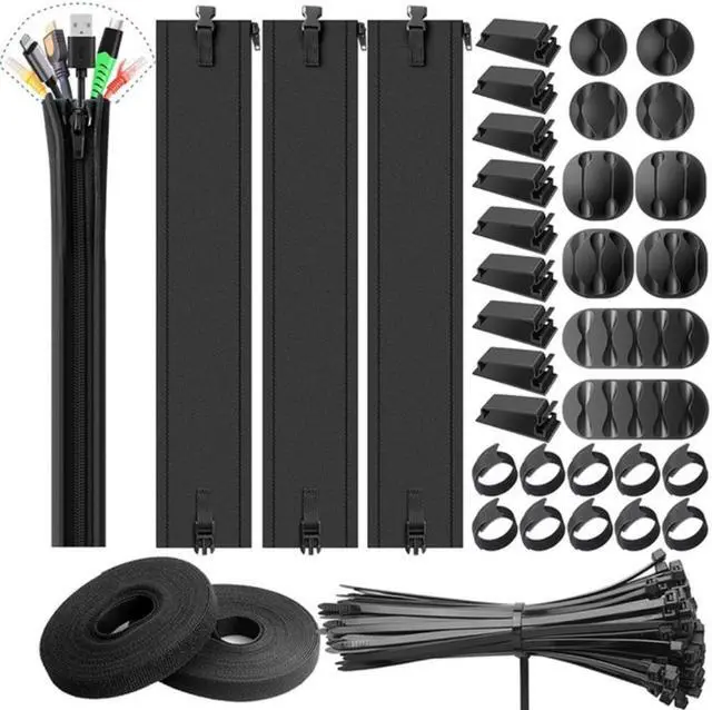 [EASY TO USE]The Cable Organizer Kit is very easy to use. There are 4 cable management sleeves designed with zippers, which can be used alone or zipped together to extend their length or width to wrap more cables. The cable management clip is even more convenient, You can simply peel and stick the adhesive clips to any surface and bundle cables together with the cable sleeves and ties.