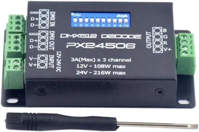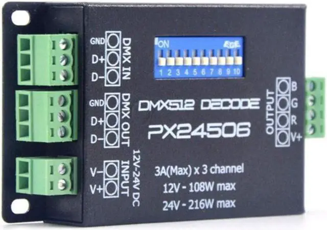 DC12V 24V PX24506 DMX 512 Decoder Driver Amplifier Controller For RGB LED Strip Light