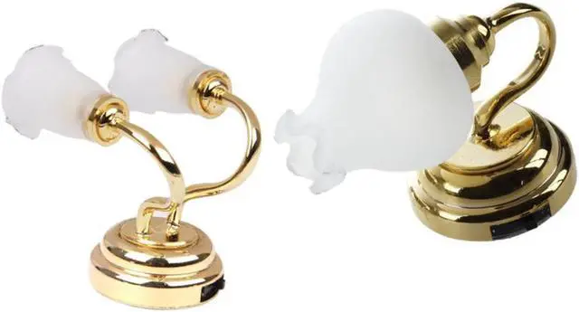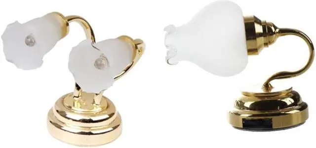 2 Pcs 1:12 Doll House Miniature Metal LED Wall Lamp Light Model, Floral & Mini Double Headed