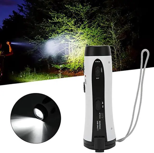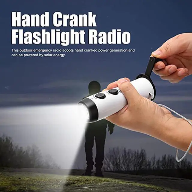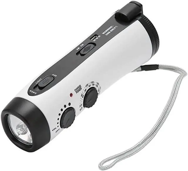 Product features: AM/FM radio; 5LED high-brightness flashlight; emergency alarm sound; emergency mobile phone charging (requires hand cranking)