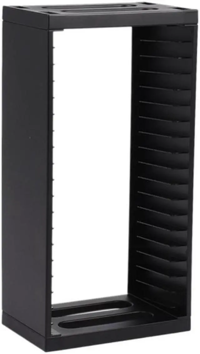 2. Each tower can hold up to 18 discs, and the modular system allows additional shelves to be stacked on top to accommodate larger and growing collections.
