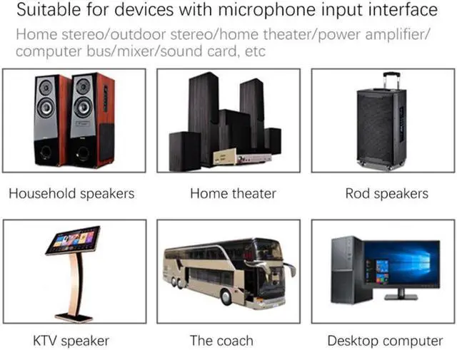 Suitable for equipment with microphone input interface, home audio / outdoor audio / home theater / power amplifier / computer bus / mixer / sound card, etc