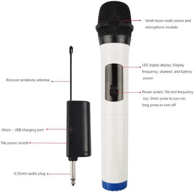 Wireless Microphone Handheld Microphone with Charging Receiver 3.5mm Adapter for Karaoke Party Speech 200 Feet