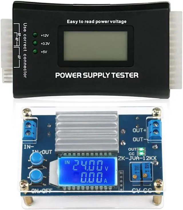 1Pcs 20+4 Pin LCD Power Supply Tester & 1Pcs DC 0-32V 12A Constant Voltage Current Step Down Power Supply Module Board