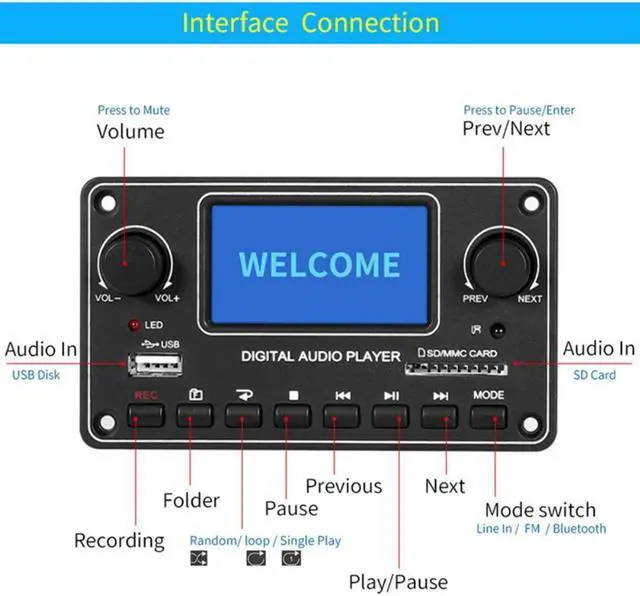 MP3 Player Decoder Board Bluetooth USB SD BT FM Line in Music MP3 Player Module DOTS LCD Digital Audio Player
