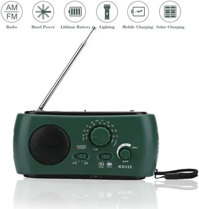Emergency Radio 4-Way Powered Solar Power, Cranking Handle, USB,AM/FM Radio With LED Flashlight Phone Charger