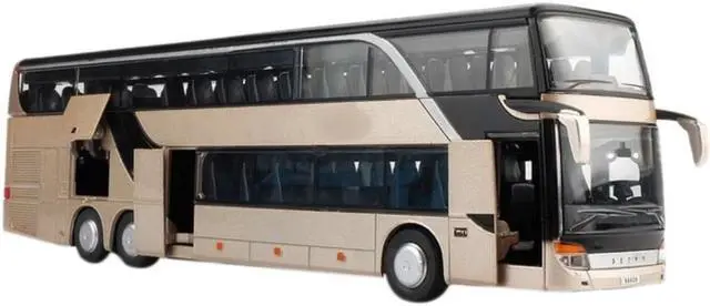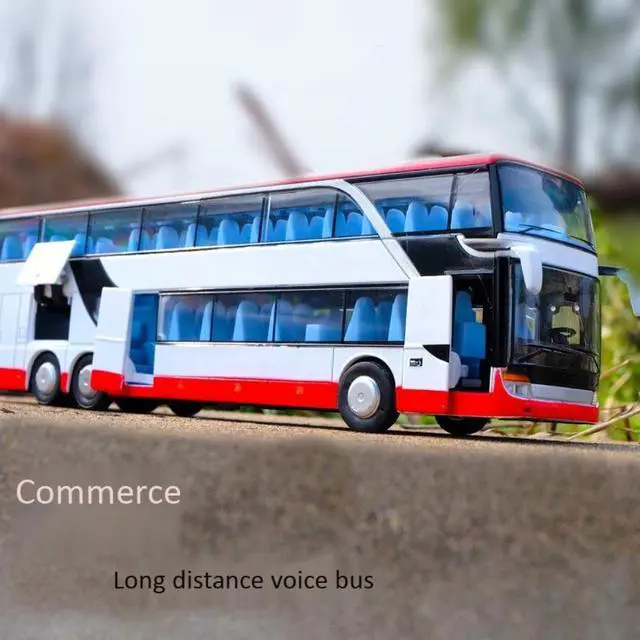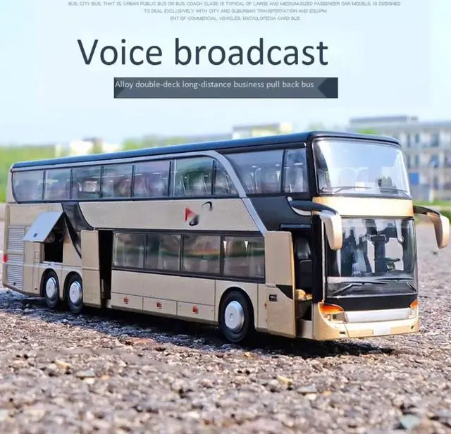 1:32 High Simulation Double Sightseeing Bus Model Toy Children Birthday Gifts Cars Alloy Flashing Sound Vehicle Toys For Kids