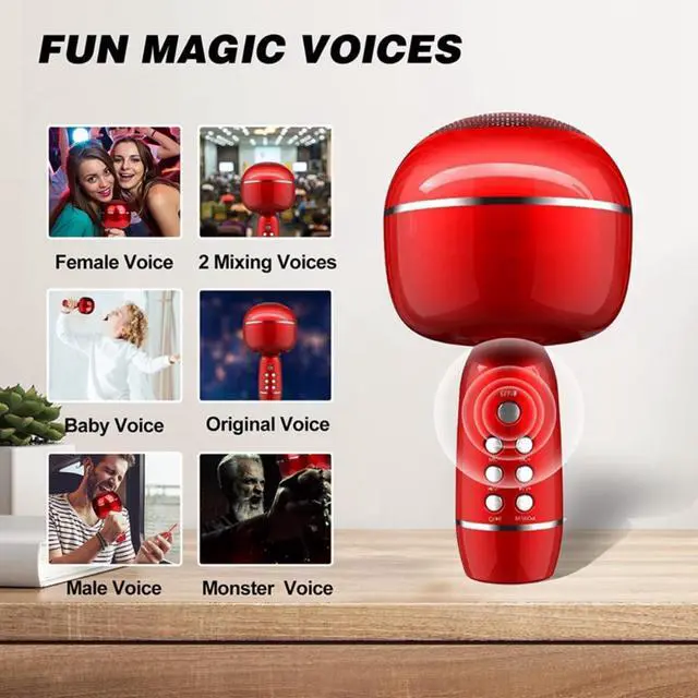 [Magic Voice Change with One Click] Karaoke bluetooth microphone has 7 kinds of magic voice effects: , Magic Voice, Baby, Female, Male, 2 Mixing, which can meet more needs and bring more fun to use. Provide you with various entertaining modes.