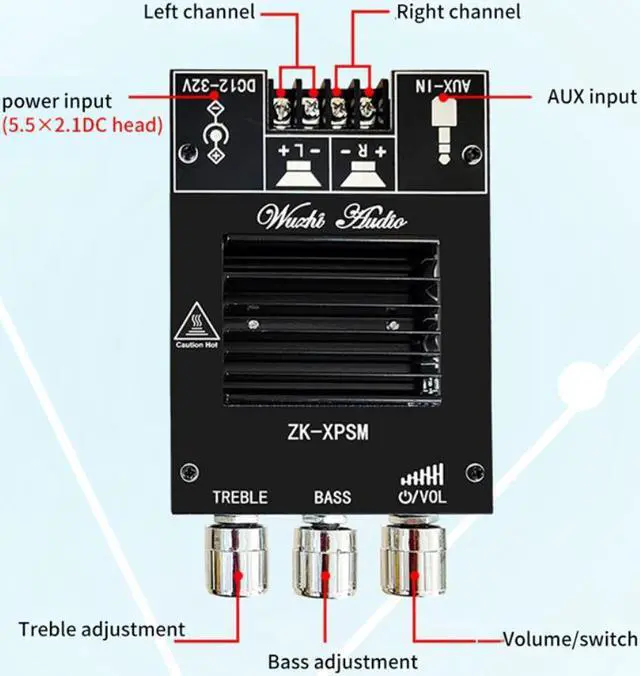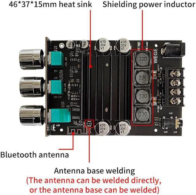 150Wx2 High and Bass Adjustment Bluetooth Audio Power Amplifier Board Module Dual Channel TDA7498E Heat Sink