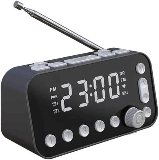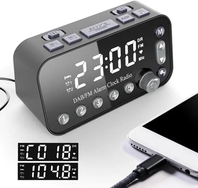 Wake up sound and snooze are optional. Wake up the buzzer or FM radio or DAB radio by preset. When you choose to wake up the radio, the alarm clock will always play the last tuned station.
