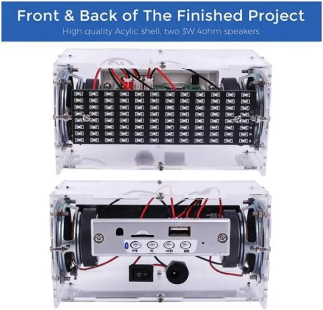 [Bluetooth Amplifier DIY Kit]: The Soldering Project DIY Kits are used to installed to an electronic transparent stereo speaker with high-power speakers, beautiful music Spectrum and transparent Acrylic shell. This Electronic DIY kit help you to learn basic electronic knowledge and circuit principles, and practice soldering skills enjoyably for you and your kids, or students, or DIYers.