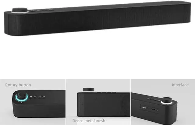 10W Tv Sound Bar with Subwoofer Home Surround Stereo Black Soundbar for Pc Theater Wireless Bluetooth Bass Sound Speaker
