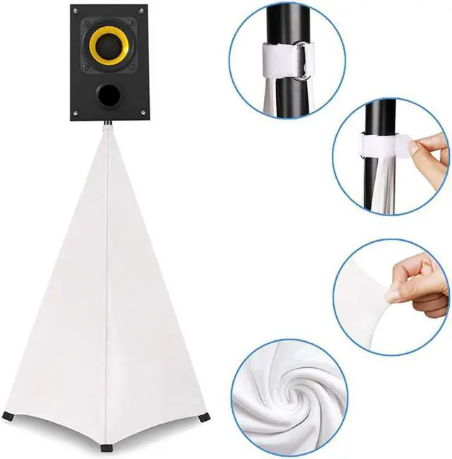 ELEGANT APPEARANCE:The stylish and simple style of the tripod cover can better decorate your stage. You can use this speaker tripod cover in banquets, weddings, concerts and other places.