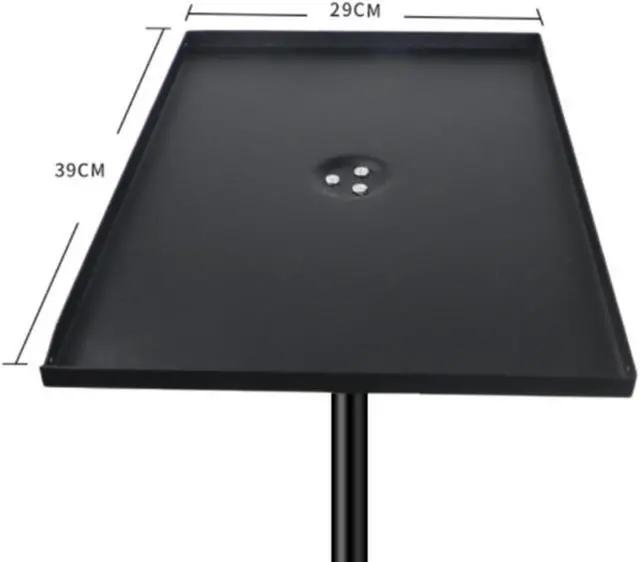 [Adjustable]: Height can be adjusted between 17inch to 48inch by your request,the tray provide a flexable viewing angle with 180 degrees rotation,fit 11inch-17inch laptop supports recorders, projectors, music notes, books, sound media equipment, etc can easily tilt height-adjustable clamp-style knobs and angle adjustable shelf tray lock mobile stand can be installed at the tray and adjusted 360° angle
