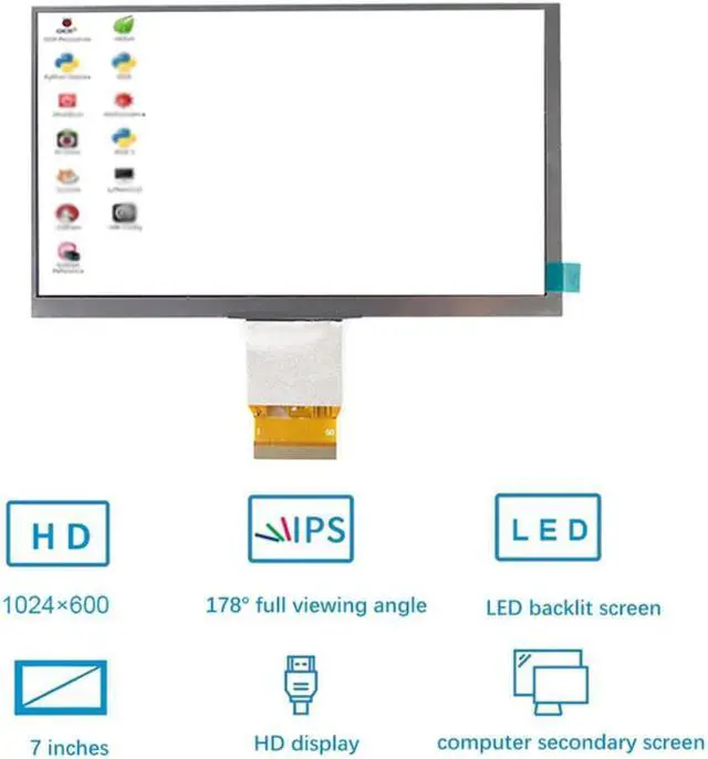 1. This 7-inch for Raspberry Pi fully considers the open source of technology research and development. The resolution of the screen reaches 1024x600, which can display more frames, the black is deep, and the color is vivid and delicate.