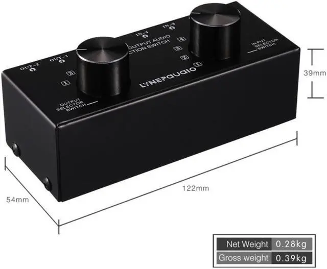 The product uses standard 3.5mm interface design for input and output, and uses precise 6-level and 2-level manual switch design for the switcher,