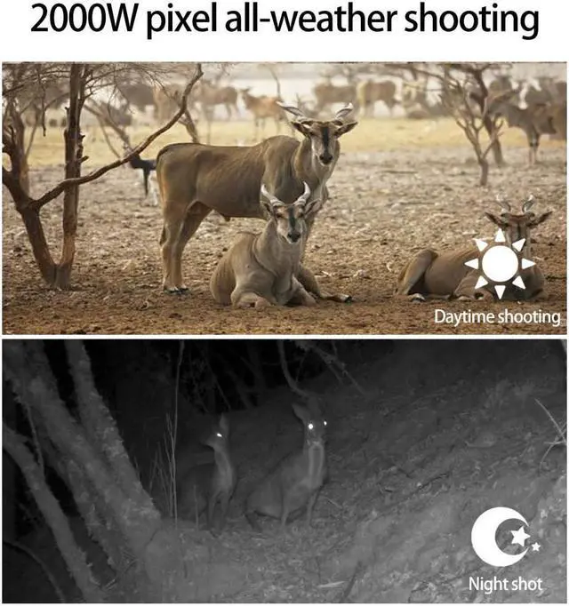 20MP high-quality image and 1080P HD video: the wildlife camera records 1080P HD videos with audio and 20MP clear image and offers high-quality details day and night. You could easily see the vivid world of wildlife