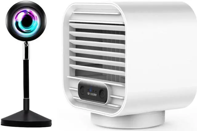 Sunset Lamp Projector Rainbow Projection Lamp LED Night Light & Mini Water Cooling Fan Portable Air Cooler White