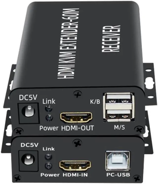 HDMI-Compatible KVM Extender 60M Over Cat5/6 Ethernet Cable 1080P USB Audio Video Converter For PC TV Monitor