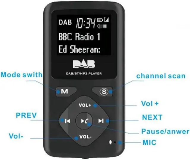 2X DAB/DAB Digital Radio Bluetooth 4.0 Personal Pocket FM Mini Portable Radio Earphone MP3 Micro-USB For Home