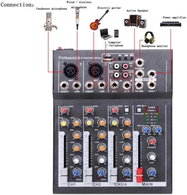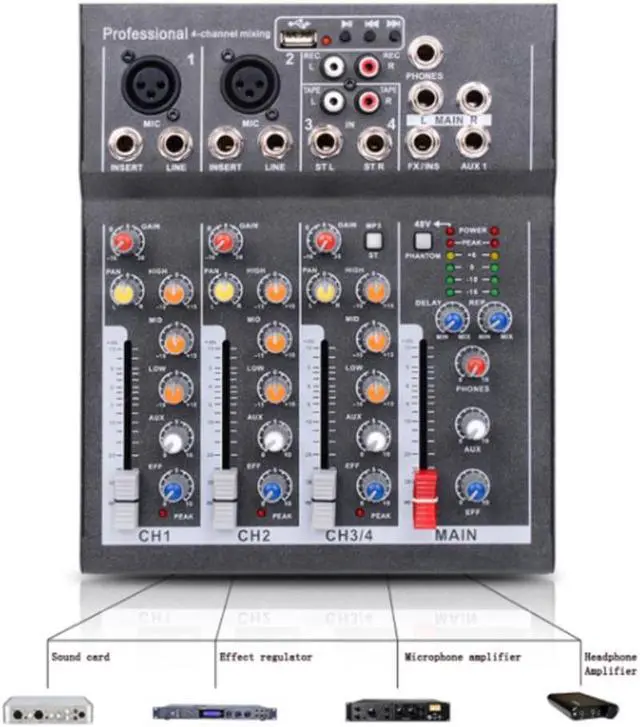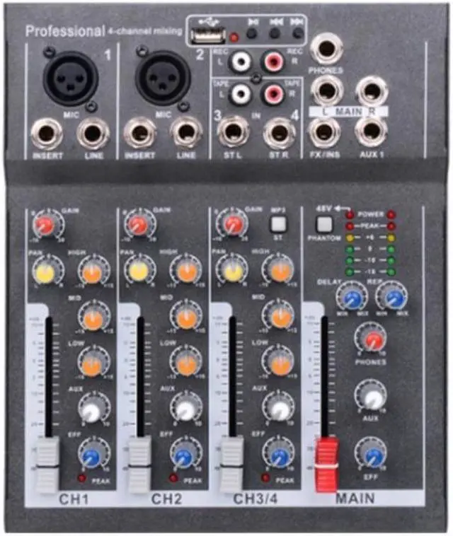 Mini Portable Audio Mixer with USB DJ Sound Mixing Console MP3 Jack 4 Channel Karaoke 48V Amplifier for Karaoke(EU Plug)