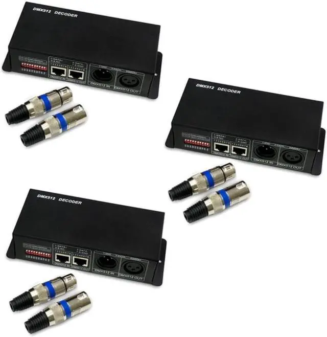 3X 4CH DC12-24V RGBW DMX 512 Decoder LED Controller, RGB LED DMX512 Decoder 4 Channel X 8A For LED Strip Light,Black