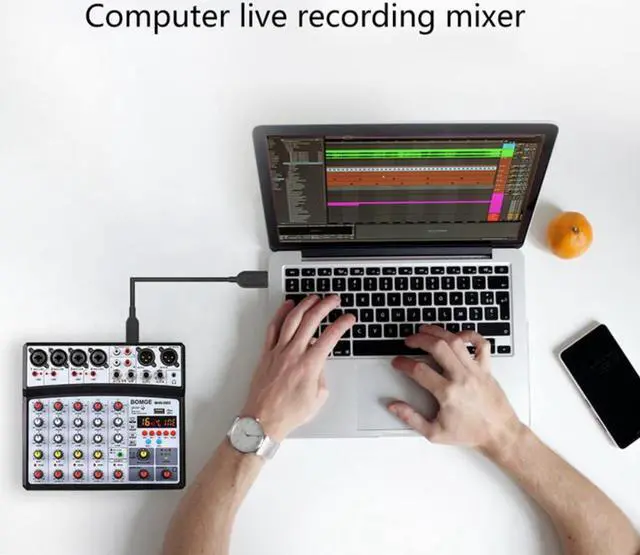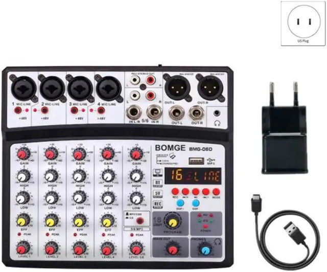 Sound Card Audio Mixer Sound Board Console Desk System Interface 6 Channel USB Bluetooth 48V Power Stereo (US Plug)