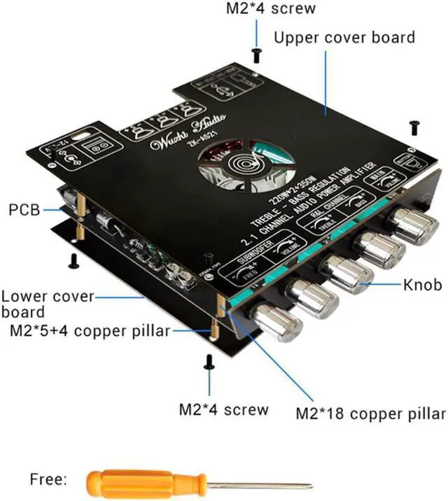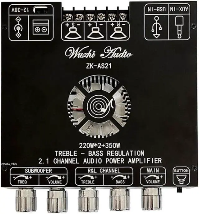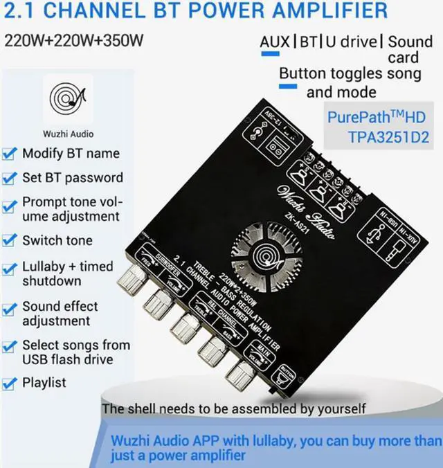 TPA3251D2 Bluetooth 5.0 2.1 Channel Power Audio Stereo Subwoofer Amplifier Board 220Wx2+350W TREBLE Low Tone AMP ZK-AS21