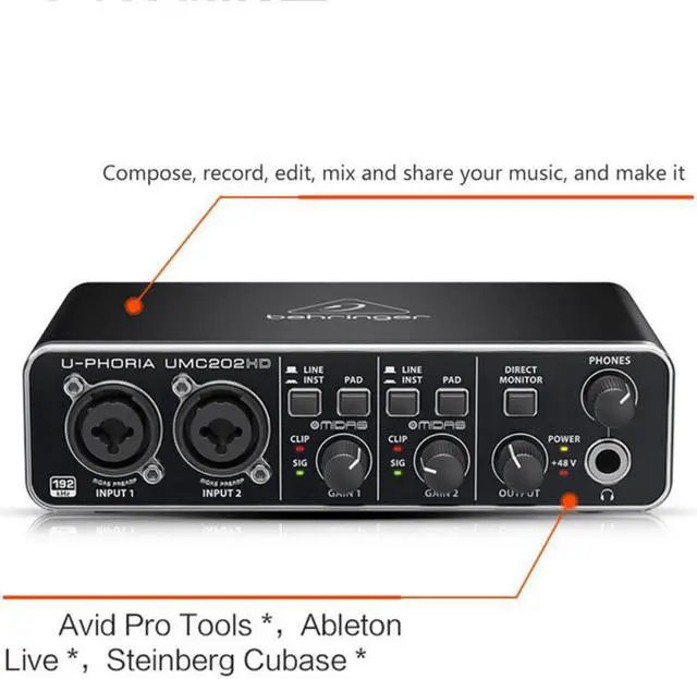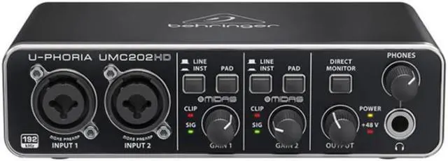 two x 2usb audio interface for recording microphones and instruments with 24 bit / 192Khz resolution to provide professional sound quality