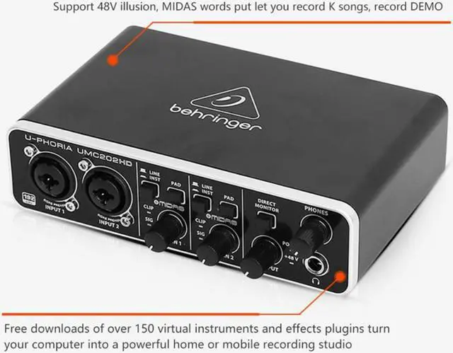 MDAS voice amplifier, 2-in-2-out professional sound card, + 48 V phantom power supply