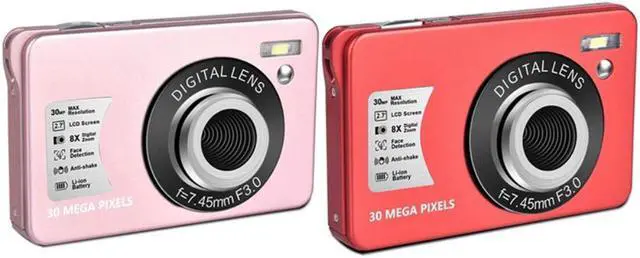 2Set HD 1080P Digital Camera 30 MP Mini 2.7 Inch LCD Screen Camera,Compact Cameras For Adult, Red & Pink