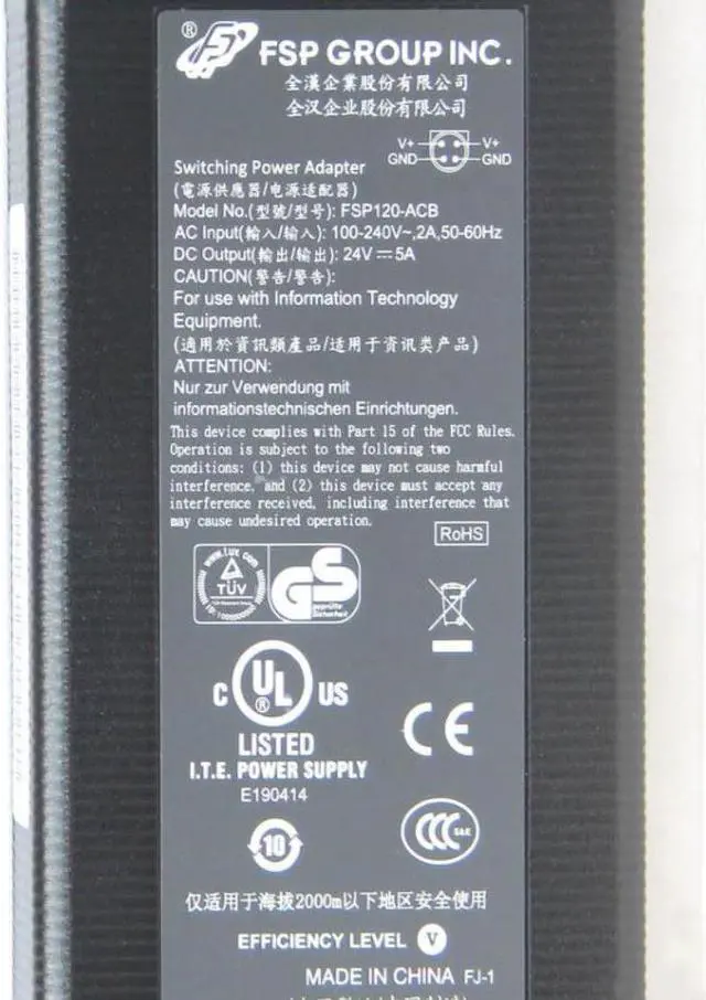 • FSP FSP120-ACB 24V 5A 120W 4PIN AC Adapter For Pioneer POS STEALTHTOUCH-M5 0227B24120 ADP-120TB B Power Supply Charger